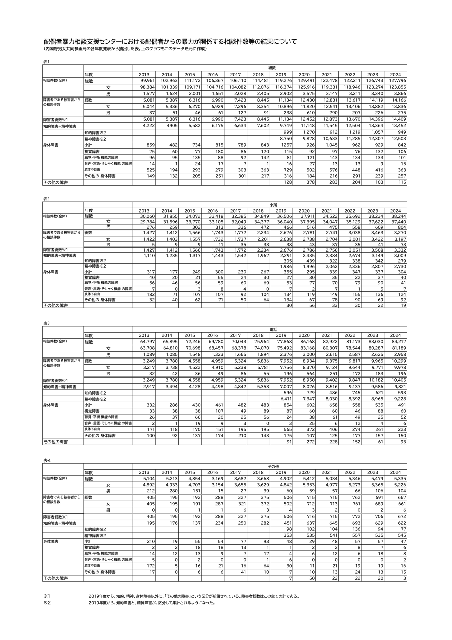 2025年12月26日に、内閣府男女共同参画局のページに、令和9年度(2024年度)の「配偶者暴力相談支援センターにおける相談件数等」が追加されました。